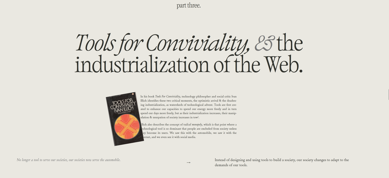 I too think it’s a beautiful website and really refreshing in its simplicity. Too often “good design” means “needlessly complex.” The design of the site also nicely fits the argument being made in the text.